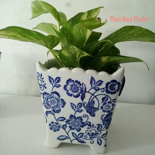 Jual Pot Keramik Kuping Gerigi Kecil Motif Bunga Biru Putih Jakarta Selatan Than Than Florist Tokopedia